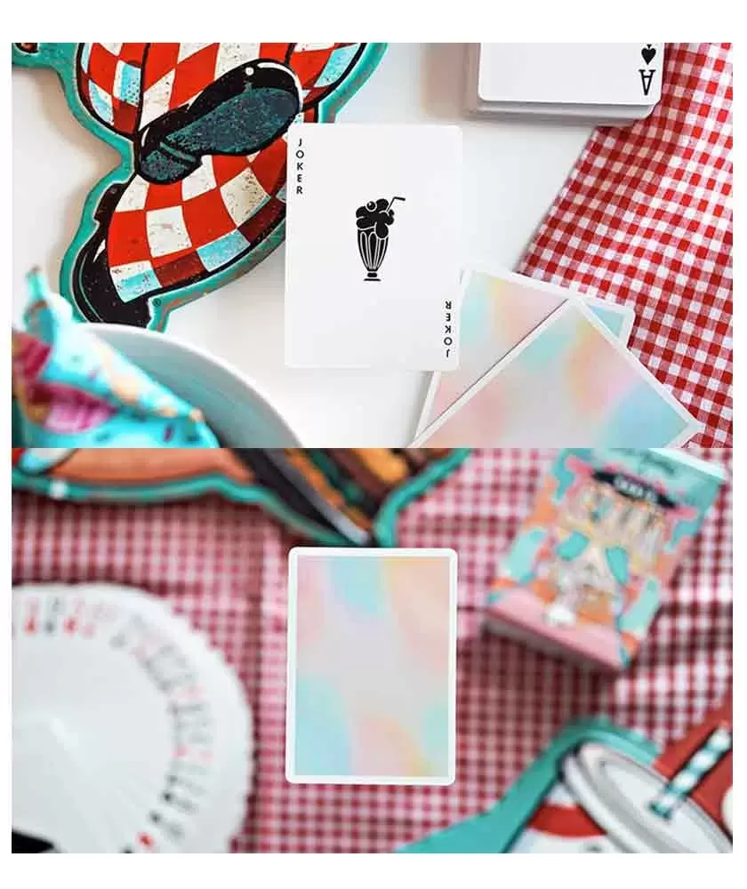 NOC Diner Milkshake – Playing Cards are a refined choice for collectors and enthusiasts of premium playing cards. This deck stands out with a unique aesthetic, inspired by the vintage atmosphere of American diners, brought to life by a custom design on the back and a carefully crafted box.