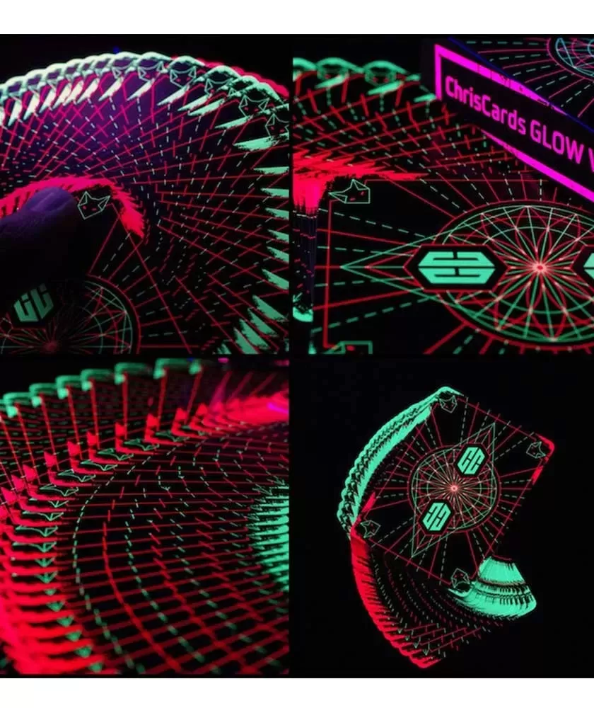 Made with premium materials and an optimized thickness, these playing cards offer excellent maneuverability, being ideal for fanning, shuffling and other complex techniques used in the art of cardistry. Chris Cards GLOW V2 combines visual aesthetics with functionality, satisfying the needs of both collectors and artists in the field.