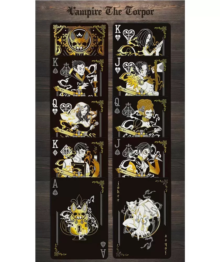Vampire The Torpor Black – Playing Cards brings a touch of refinement and exclusivity to the world of collectible playing cards. This deluxe edition exudes a sober and mysterious energy, perfect for those who appreciate artistic details and superior quality.
