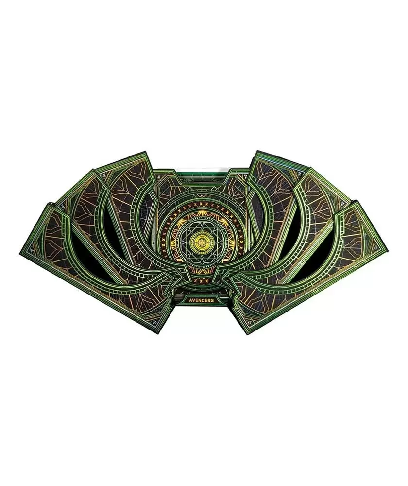 Made of high-quality cardboard and printed in Taiwan, the cards stand out for their attention to detail and impeccable finishes. The box that accompanies them is a real spectacle, discreetly lighting up with a green LED that symbolizes the Eye of Agamotto, adding extra value and exclusivity to the entire set. The pack comes fully equipped with batteries, ready for display or collection.