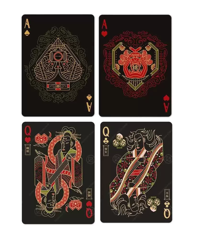 Densho Green – Playing Cards is a refined collection dedicated to playing card enthusiasts with a special artistic taste. This set brings to life the legends and supernatural characters of Japanese folklore, offering a captivating and distinctive visual experience.