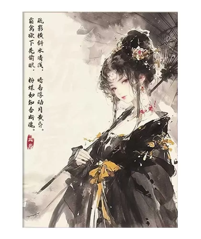 The back of each card captures a delicate scene with an oil paper umbrella and plum blossoms accompanied by swallows, giving an artistic and sophisticated air to the entire deck. These cards are ideal for collectors who appreciate unique artistic design and superior quality.