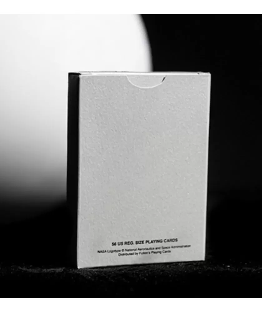 Each card is personalized with authentic illustrations inspired by NASA’s archives, reinterpreted in a retro graphic style specific to the American space age. Printed on premium cardstock, these cards are suitable for both collectors and cardistry enthusiasts, offering superior texture and maneuverability. The elegant silver metallic paper box, embossed with the NASA logo, adds an extra touch of refinement and protection to the set.