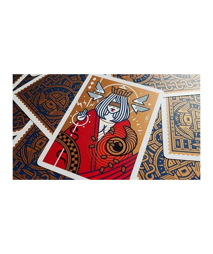 Made in a limited edition of 2500 copies, this deck is printed in the USA by USPCC, renowned for the superior quality of materials and finishes. The cards are made on a traditional Bicycle stock, with a classic cut, ensuring a premium tactile experience. The set includes four tarot-style jokers, adding a unique touch to the collection.