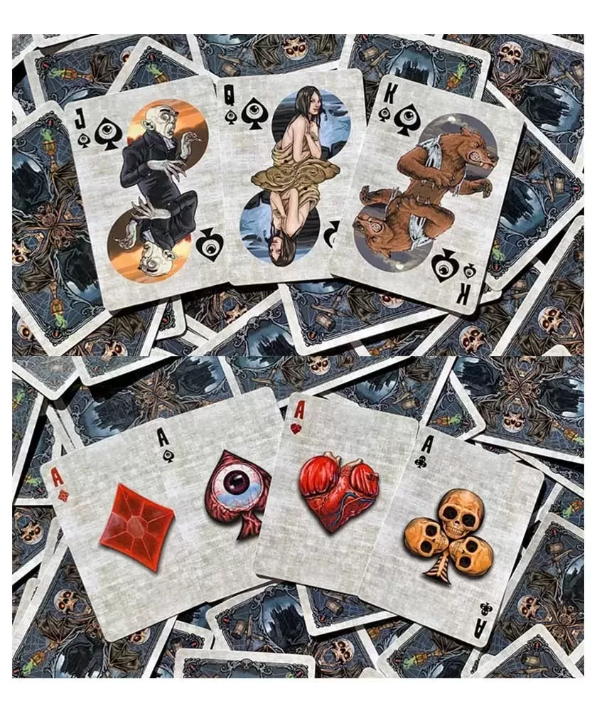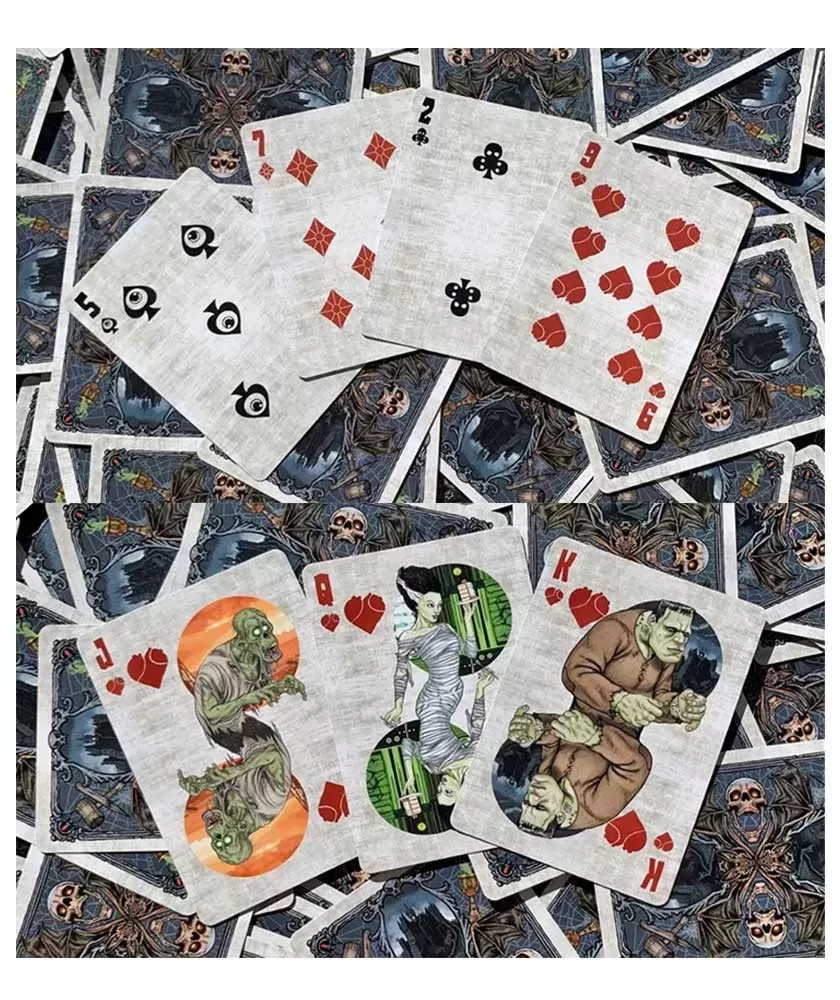 Carefully crafted by the American manufacturer USPCC, these cards use Classic Bicycle paper and an Air-Cushion finish, ensuring excellent durability and maneuverability. The original design signed by Joe Ruiz brings each card to life, with each suit representing a distinct category of monsters, and the jokers having the role of monster hunters. The elegant box and standard USPCC seal complete the premium look of the set.