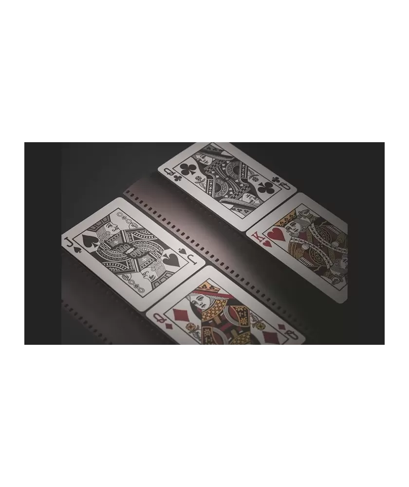 With only 2500 copies printed, these cards impress with a subtle One Way design, ideal for magic tricks, and a Stock crushed finish that gives them a very thin and elastic texture. The black box, with embossed shapes and custom seal, reflects the attention to detail and elegance of the production made by USPCC, Made in the USA.