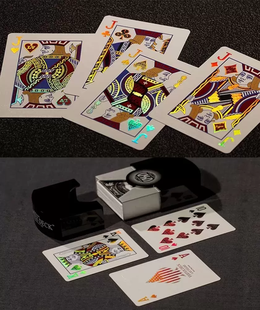 Vertex Black – Playing Cards is a limited edition, created for enthusiasts and collectors of special playing cards. This set combines sophisticated design with innovative technology, offering a unique visual experience through holographic elements applied to both the front and back of the cards.