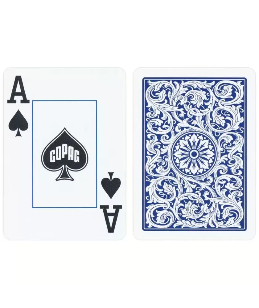 Each pack contains 55 cards in poker size format (63 x 88 mm), including two jokers and a guarantee card, all with Jumbo index for better visibility during the game. The dual color design (blue and red) allows for a pleasant and easily recognizable alternation. Compatible with most automatic shufflers, these cards come from the Brazilian brand COPAG, with a tradition in the production of playing cards since 1908.