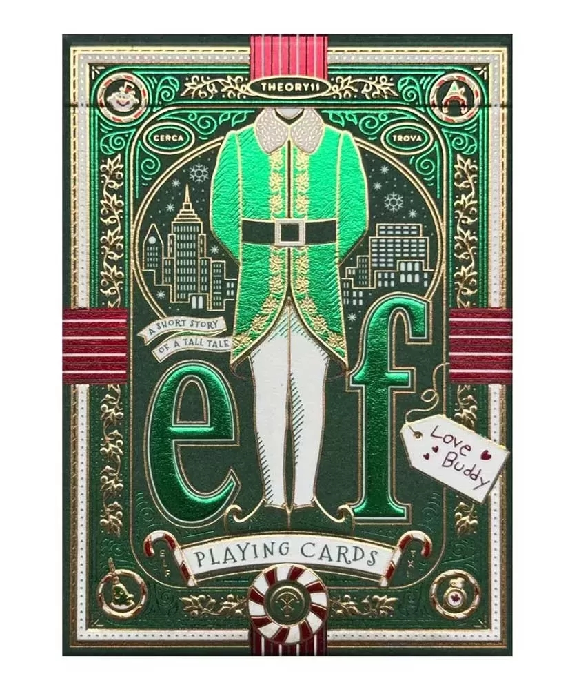 Elf Playing Cards by theory11 is a premium deck designed to transform every game session into a festive and joyful experience. Inspired by the unique charm of the movie Elf, this set brings beloved characters and iconic moments to life, offering a warm and cheerful atmosphere.