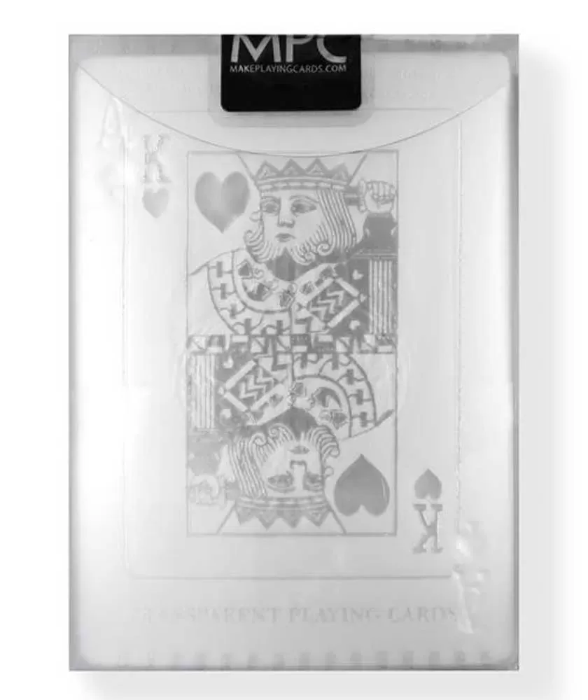 The cards are made of a special, transparent plastic, embossed with discreet symbols and numbers, without colors, which gives them a distinctive and sophisticated look. The finish allows for easy sliding, facilitating maneuvers such as fans, springs or other advanced manipulation techniques. The thickness and texture are comparable to those of a standard quality pack, and the water resistance makes them ideal for use in various conditions, including on vacation or at the pool.