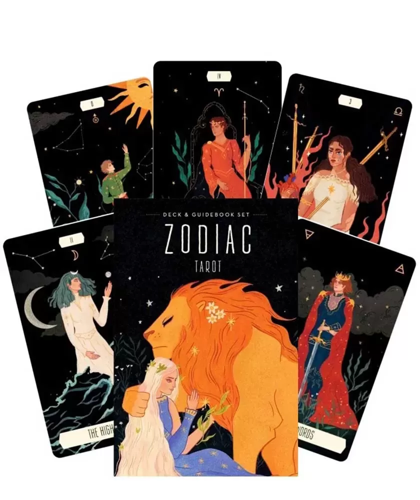 The Zodiac Tarot Deck and Book Set offers a unique experience that highlights the deep connection between tarot and astrology. This pack brings a mystical energy, inviting introspective exploration through images inspired by the 12 zodiac signs and the planets that govern them.