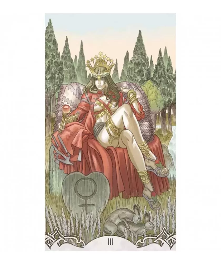 Erotic Fantasy Tarot – Tarot Deck is a set created for those who want to enter a world full of eroticism, magic and feminine beauty. This pack offers an artistic and profound perspective on traditional tarot symbols, combining them with fantasy elements that inspire reflection on passion and connection in a couple. The images have a playful and expressive character, evoking a free, uninhibited energy.