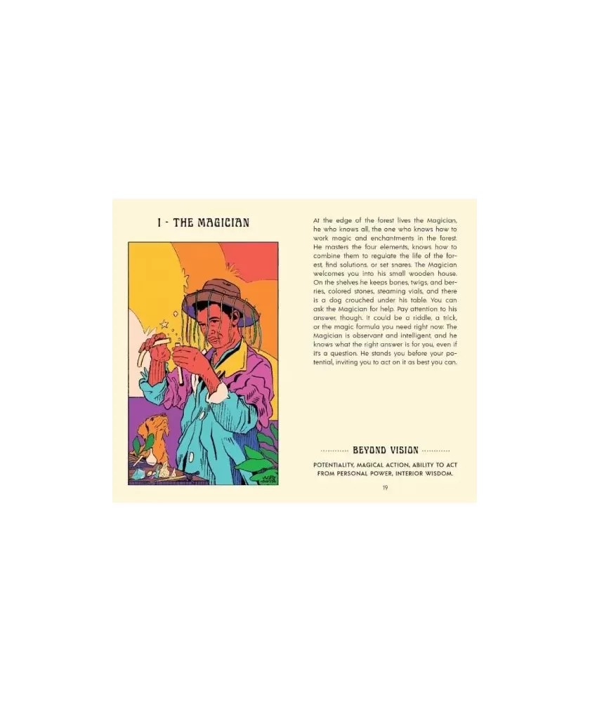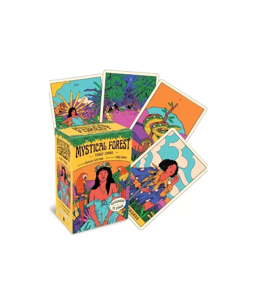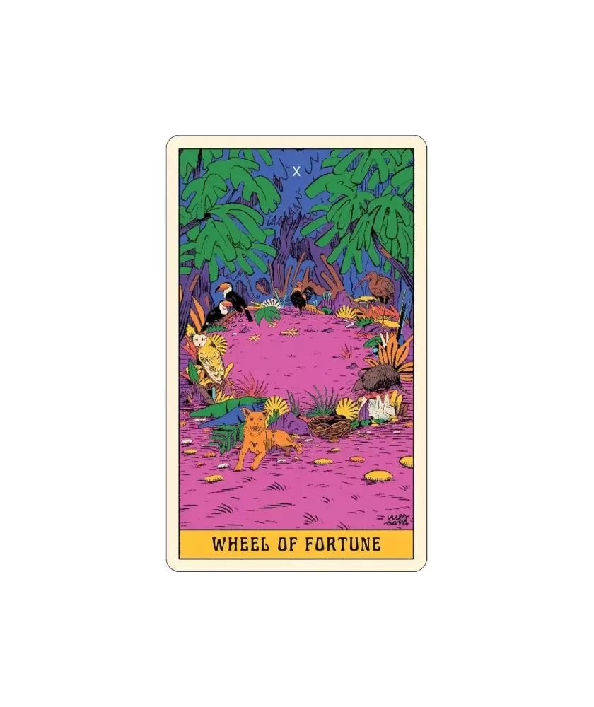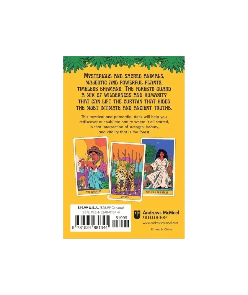The vibrant illustrations, created by street artist Wes Gama, bring a psychedelic and colorful breath, evoking the lush atmosphere of the Amazonian flora and fauna. Each card is an invitation to reflection and exploration, surrounded by vegetation and intense colors, creating a subtle connection between man and nature. The set contains 78 cards and an illustrated guide in English, being an original Andrews McMeel Publishing product.