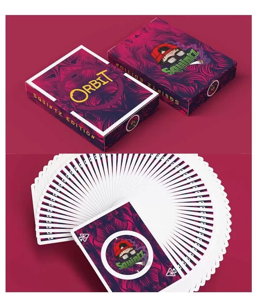 Orbit X Squintz – Playing Cards reprezintă o colaborare energică și vizuală semnată de Orbit Brown, perfectă pentru cei care practică cardistry sau colecționează pachete unice. Acest deck emană o energie dinamică și vibrantă, conceput pentru a susține manevre complexe și fanning-ul precis.