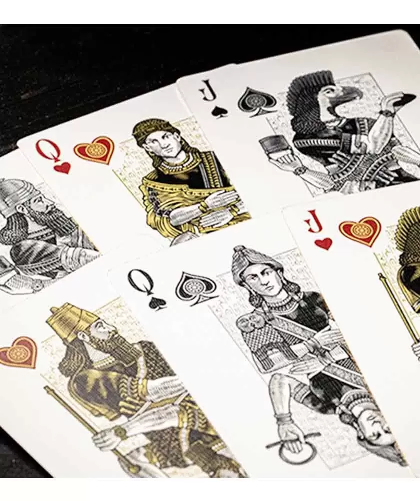 Fiecare pachet este realizat cu materiale superioare, tipărit în Taiwan, recunoscut pentru standardele sale înalte în producția de cărți de joc. Designul sofisticat și finisajele aurii reflectă pasiunea pentru estetică și exclusivitate, făcând acest set ideal pentru colecționari sau pasionați de obiecte unice.