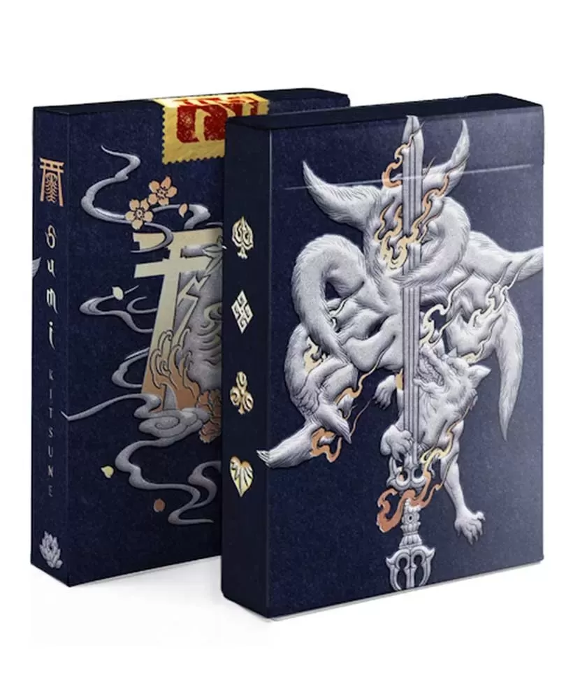 Sumi Kitsune Myth Maker Blue Craft Letterpressed Tuck – Playing Cards este o colecție remarcabilă dedicată pasionaților de artă și colecționării de cărți de joc premium. Acest set emană o energie aparte, îmbinând tradiția japoneză Wabori cu simbolistica misterioasă a Kitsune, oferind astfel o experiență vizuală și tactilă unică.
