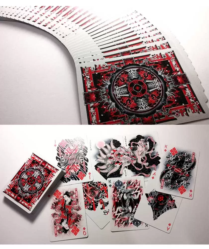 Sumi Kitsune Tale Teller Craft Letterpressed Tuck – Playing Cards aduce un suflu artistic autentic în colecția ta, fiind un set remarcabil pentru pasionații de design și artă japoneză. Inspirat din Wabori, arta tradițională a tatuajelor japoneze, acest pachet evidențiază frumusețea și misterul Kitsune, figura legendară a vulpii din folclorul nipon.