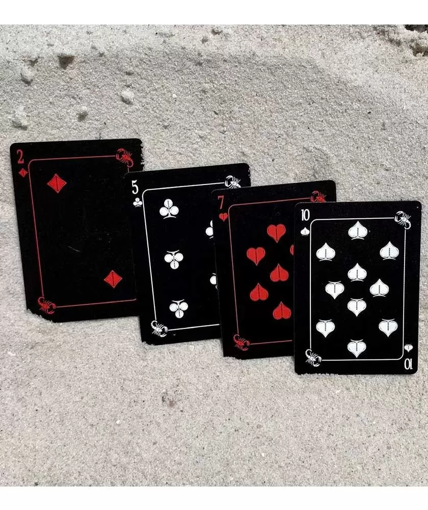 Designul artistic semnat de Artur Rajch, produs de Will Roya în 2022, evidențiază tema scorpionului prin fețele negre și detaliile customizate, conferind un aer misterios și sofisticat. Fabricate de USPCC pe stoc clasic, cărțile beneficiază de o tăiere tradițională și finisaj Air-Cushion, pentru o manevrabilitate optimă. Setul include două cărți gaff speciale, sporind valoarea colecției.