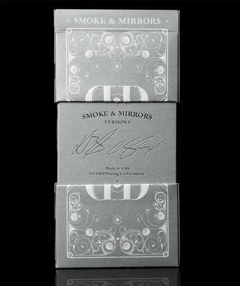 Smoke & Mirrors V8 Silver Deluxe – Playing Cards este o ediție remarcabilă dedicată colecționarilor și artiștilor din lumea cardistry și a magiei. Această versiune deluxe a fost lansată după o așteptare de zece ani, aducând un suflu nou prin detalii atent lucrate și finisaje premium.