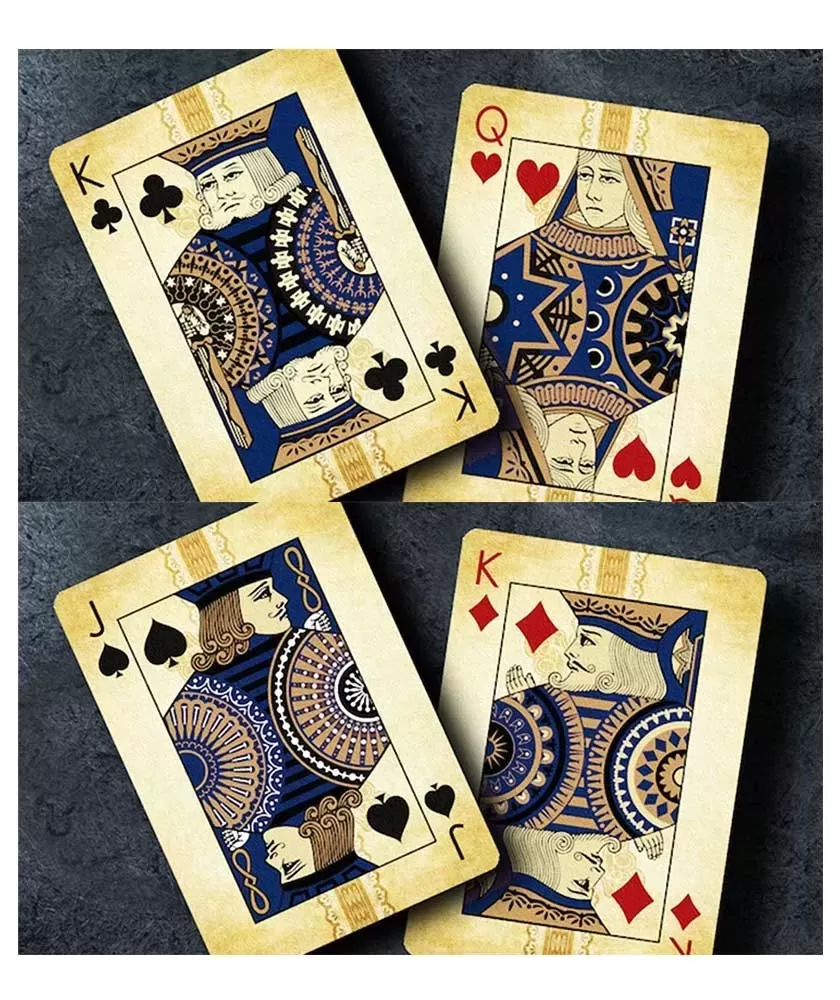 Fiecare detaliu reflectă o atenție meticuloasă, de la cartonul Crusked Stock până la cutia cu insertii aurii, realizată de producătorul SixtyFourPlayingCards și printată de NPCC Noir Arts. Dimensiunea poker size și indexul standard asigură atât manevrabilitate, cât și utilitate în diverse contexte.