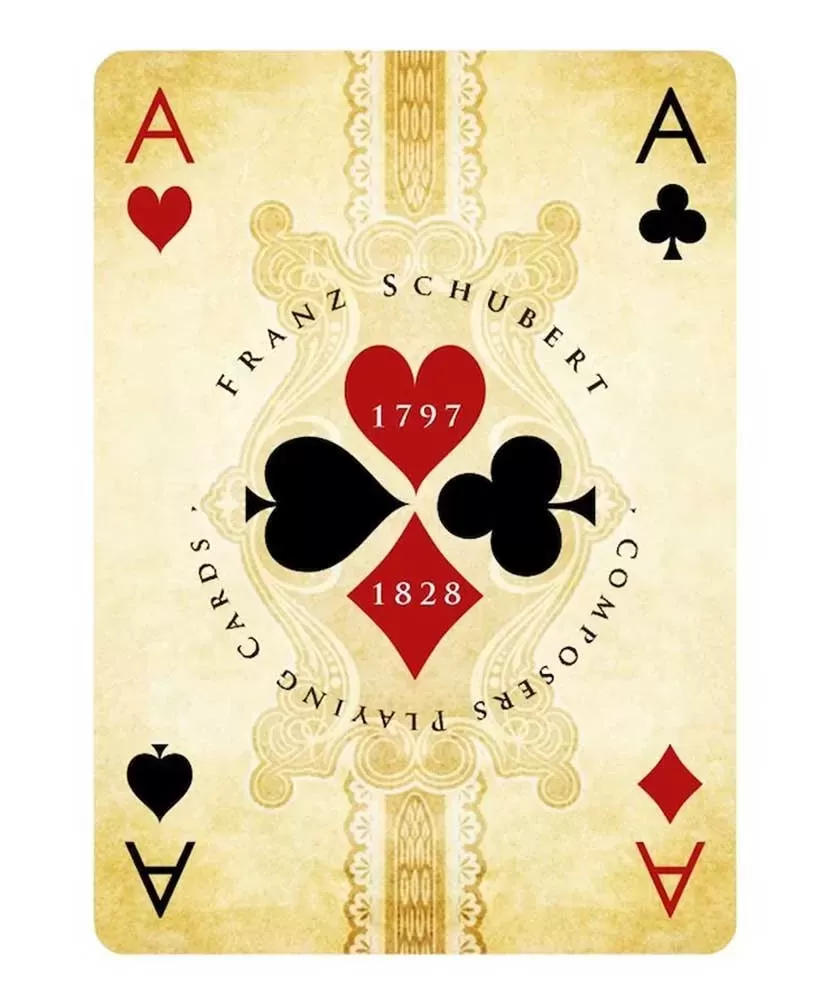 Setul include patru cărți ce formează portretul lui Franz Schubert și o carte specială „life card”, oferind astfel o experiență unică și rafinată. Franz Schubert Composers – Playing Cards sunt o alegere ideală pentru cei care apreciază arta, cultura și calitatea superioară într-un pachet exclusivist.