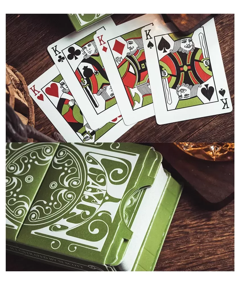 Smoke & Mirrors V8, Green Deluxe Edition – Playing Cards oferă o experiență premium pentru pasionații de cardistry, combinând design-ul spectaculos cu performanța tehnică. Acest set energic și vizual este ideal pentru cei care caută manevrabilitate și stil în fiecare mișcare.