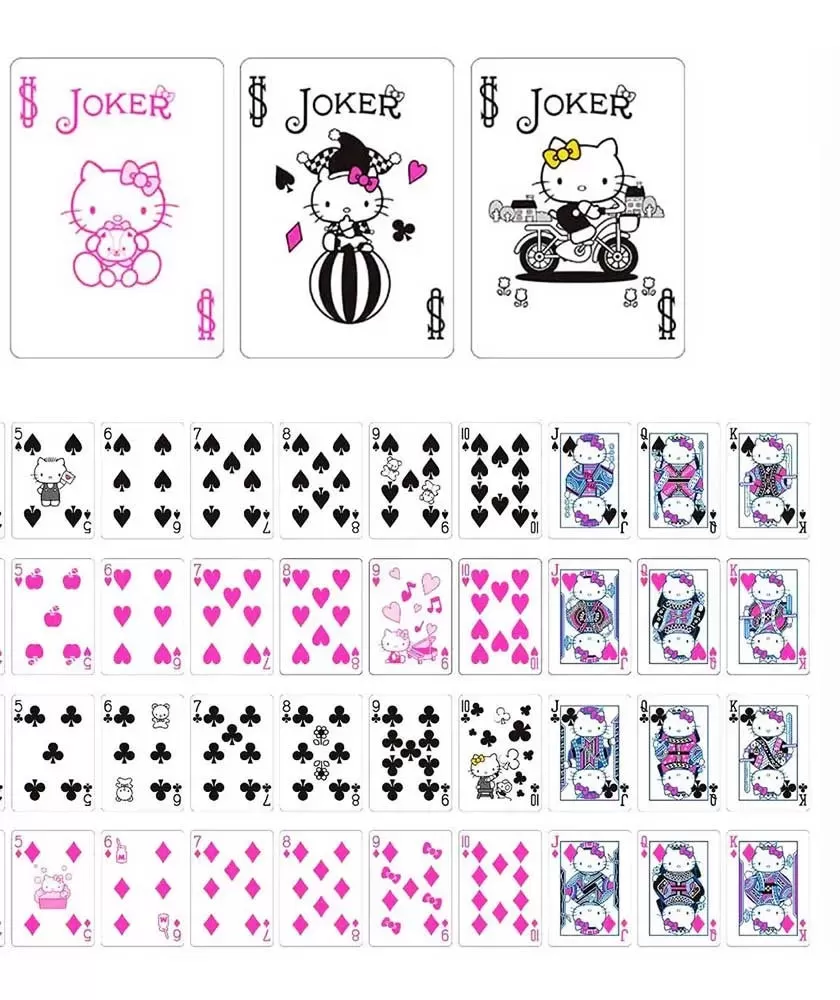 Fiecare carte surprinde culorile neon și elementele vizuale care amintesc de faimoasa pisicuță cu funda roz, oferind un echilibru perfect între funcționalitate și estetică. Tipărite cu precizie, aceste cărți sunt ideale pentru utilizare în familie, petreceri sau ca obiect de colecție limitat, având un finisaj care asigură o manipulare plăcută.