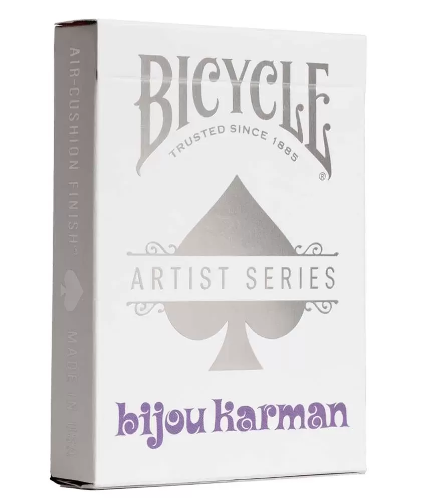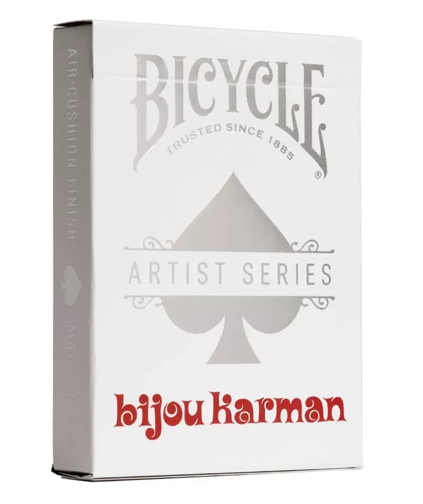 Bicycle Artist Series Playing Cards: BIJOU KARMAN este un set de colecție ce îmbină funcționalitatea cărților de joc cu o estetică artistică rafinată. Acest set special, realizat în colaborare cu artista Bijou Karman, aduce o energie vibrantă și un stil distinct, inspirat de teme precum puterea feminină și elemente naturale, reflectate în culori intense și motive expresive.