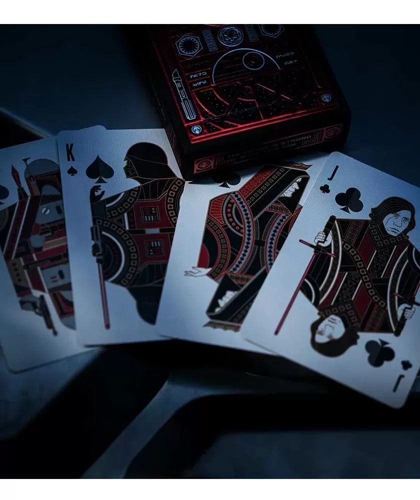 Fiecare box set cuprinde șase pachete de cărți de joc, inclusiv ediții speciale cu detalii aurii și ilustrații atent realizate ale personajelor legendare din saga Star Wars. Producătorul theory11 este recunoscut pentru atenția la detalii și pentru inovațiile estetice, iar această serie nu face excepție, combinând elemente vizuale impresionante cu funcționalitate excelentă.