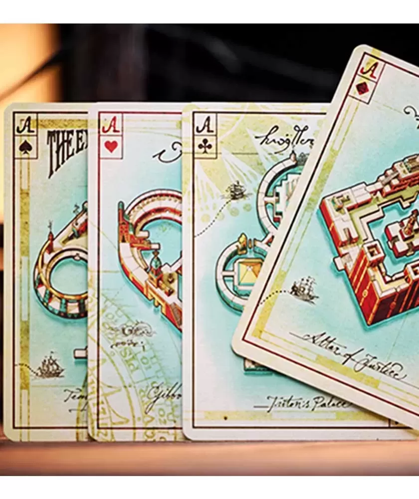 Fiecare detaliu al acestui pachet reflectă măiestria producătorului Stockholm17 Playing Cards, cu 56 de cărți în format poker prevăzute cu aplicații metalizate de folie aurie și margini albastre metalizate, toate sigilate în folie protectoare. Cutia specială cu decupaj personalizat completează aspectul premium, iar puzzle-ul interactiv format de cele 56 de cărți dezvăluie o hartă misterioasă, captând imaginația utilizatorului.