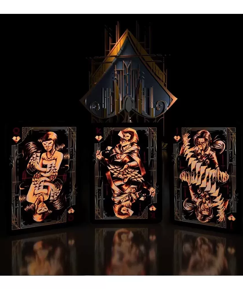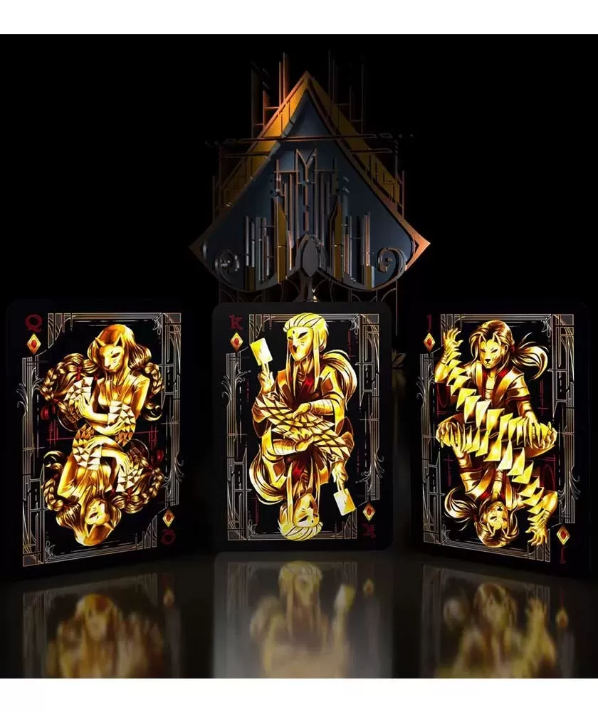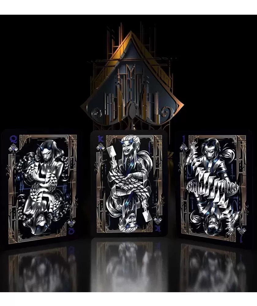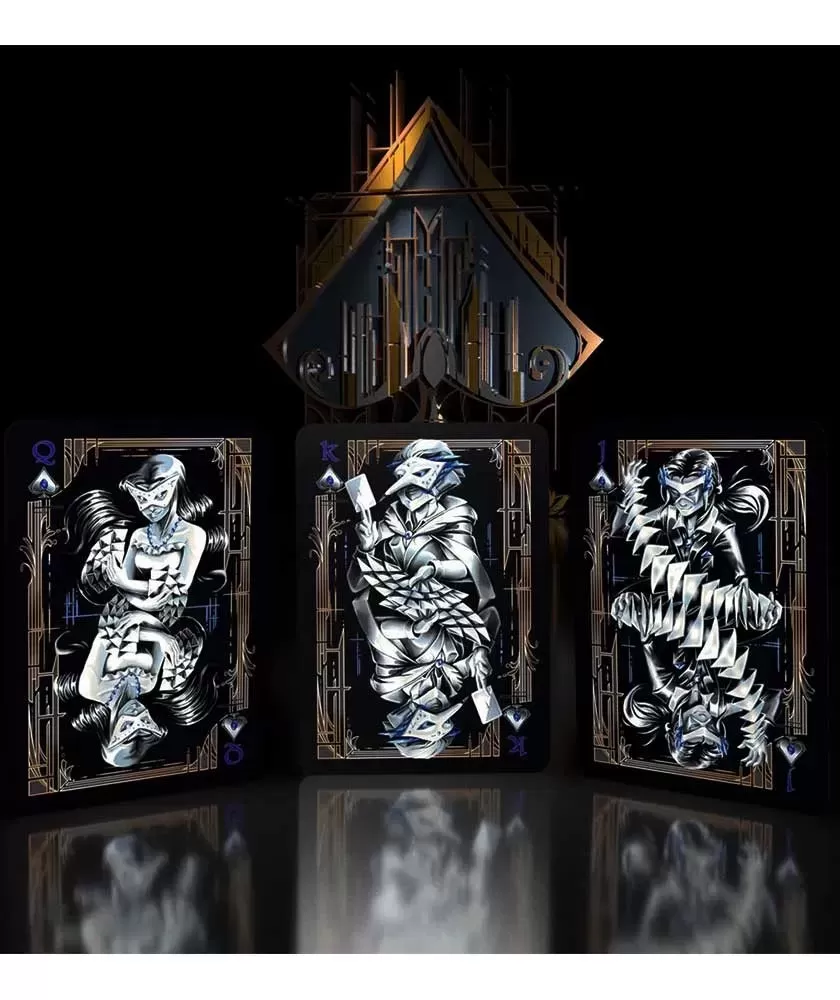 Fiecare detaliu este creat cu atenție, de la simboluri și cărți de figură până la jokeri, oferind o experiență vizuală captivantă și o manevrabilitate remarcabilă. Ilustrațiile realizate de Anika Burrell adaugă o notă artistică, în timp ce calitatea materialelor folosite asigură o flexibilitate perfectă pentru fanning, fans și card springs, ideale pentru performanțe tehnice și spectaculoase.