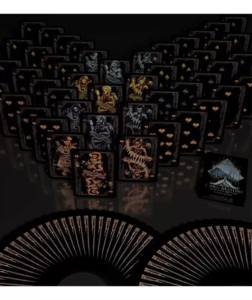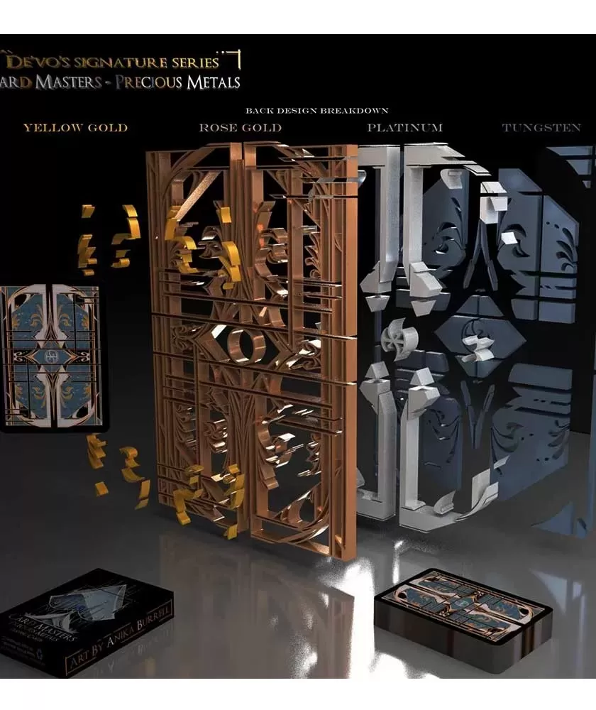 Card Masters Precious Metals Standard by Handlordz – Playing Cards este conceput pentru entuziaștii de cardistry ce caută performanță și stil într-un singur pachet. Acest set redefinește experiența jocurilor și a manipulărilor cu un design exclusivist în patru nuanțe metalice: Platină, Tungsten, Aur Galben și Aur Roz.