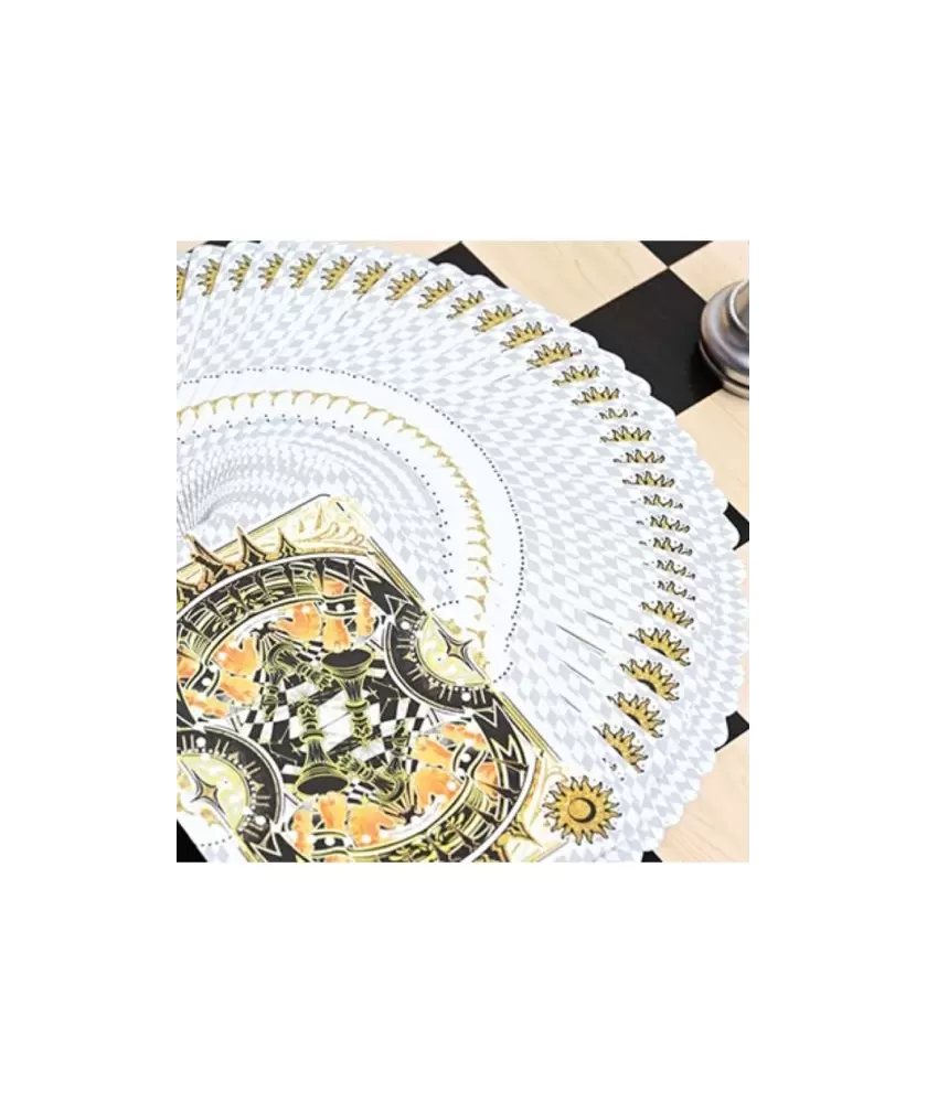 CHESS White Playing Cards by Hidden Light reprezintă o colecție exclusivă dedicată pasionaților de artă, design și simbolism. Acest pachet aduce în prim-plan eterna confruntare dintre alb și negru, redată printr-un stil inspirat de epoca barocă a secolului al XVII-lea. Designul regal și rafinat, în tonuri de alb și auriu, evocă atmosfera Curții Albe, modelată după Palatul de Cristal din Praga, cu detalii Rococo aurite și cupole din sticlă colorată.