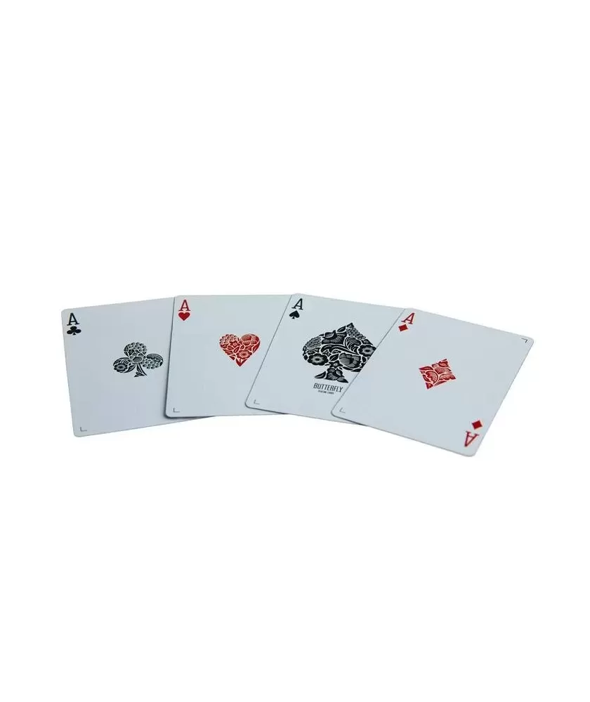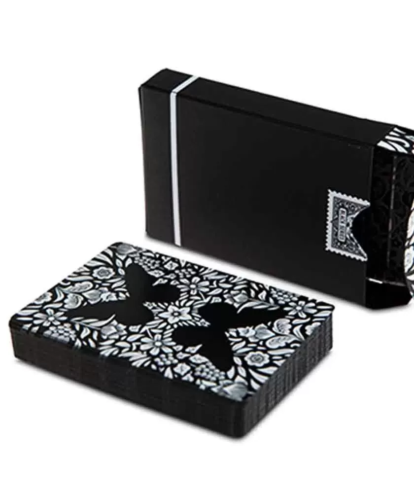 Butterfly Black - White Gilded NotMarked – Playing Cards aduc un plus de eleganță și rafinament oricărui joc sau colecție. Acest pachet premium este potrivit pentru cei care apreciază calitatea superioară și designul artistic, fiind o alegere ideală pentru colecționari și jucători experimentați care caută un aspect distinctiv și un finisaj deosebit.