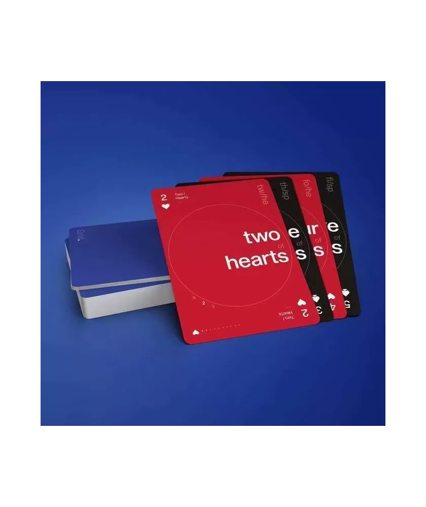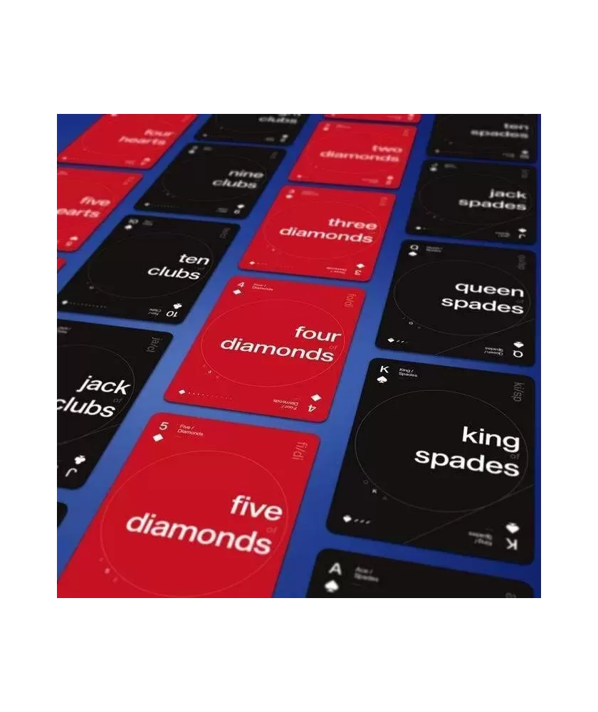 Proiectate de Luke Wadey, cărțile se inspiră din principiile stilului tipografic internațional, cunoscut și ca stilul elvețian, care pune accent pe lizibilitate și aliniere precisă, folosind grile ascunse ce organizează elementele vizuale într-un mod asimetric și echilibrat. Printate pe carton premium, acestea sunt realizate de United States Playing Card Company, garantând calitate superioară și durabilitate.