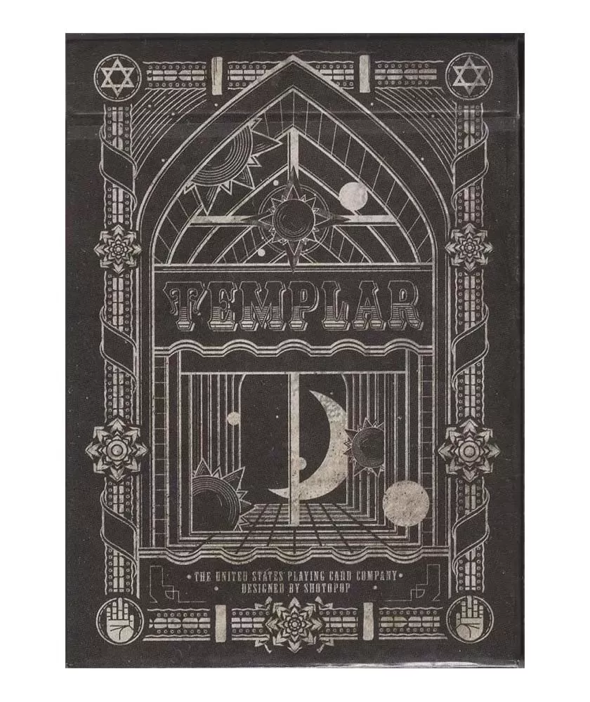 - ul pachetului de carti de joc Templar a fost inspirat de Cavalerii templieri francezi (in franceza: Ordre du Temple). Curat, elegant si rafinat, designul este realizat de Shotopop Studio din Londra. Produs de Bocopo Art Playing Card CO. Made in USA.