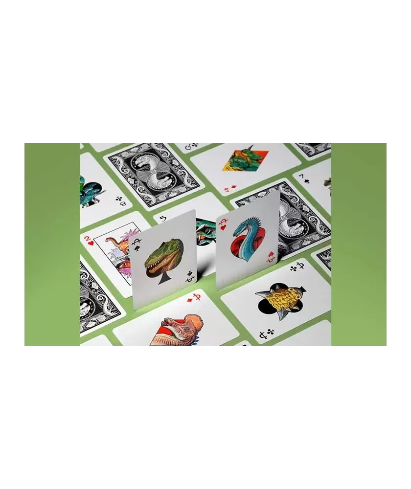 Fiecare carte este ilustrată de William Stout, un artist recunoscut internațional, ale cărui lucrări despre dinozauri sunt expuse în muzee prestigioase precum Smithsonian și British Museum. Setul conține 54 de ilustrații diferite, toate realizate cu atenție și tipărite de United States Playing Card Company (USPCC), garantând o calitate superioară a materialelor și a imprimării.