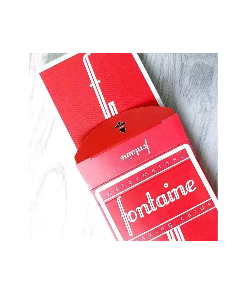 Fabricate în Statele Unite ale Americii de către USPCC, aceste cărți de joc impresionează prin calitatea materialelor și finisajelor, perfecte atât pentru joc, cât și pentru expunere. Cu doar 2500 de pachete disponibile, Watermelon Fontaine se adresează celor care apreciază exclusivitatea și măiestria în realizarea cărților.