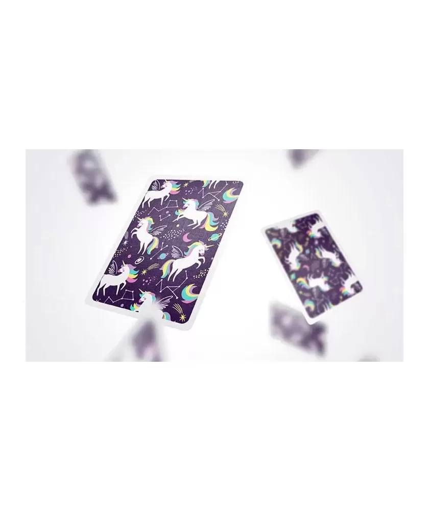 Unicorn by TCC – Playing Cards aduce eleganța și magia universului unicorniștilor într-un pachet de colecție rafinat, potrivit atât pentru pasionații de artă, cât și pentru iubitorii de cărți premium. Acest set se remarcă prin tematica unică, ilustrată de artistul Mango Grafiks, care surprinde unicorni pierduți printre planete, comete și constelații, oferind un aspect vizual deosebit.