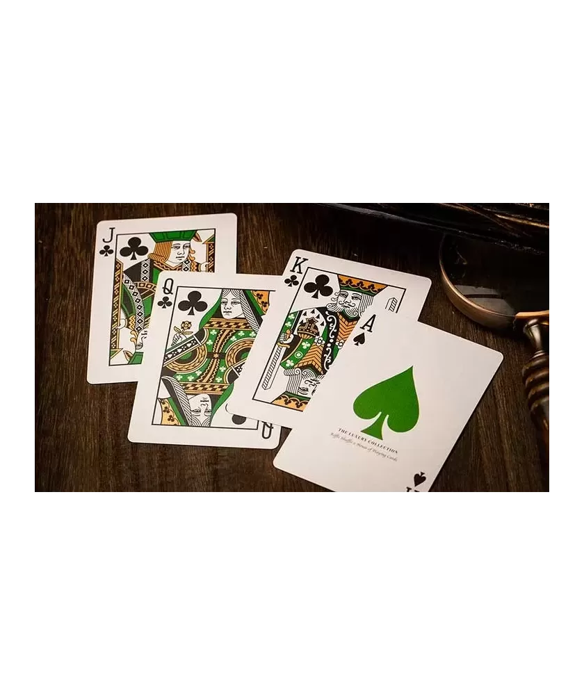 NOC Emerald The Luxury Collection – Playing Cards reprezintă combinația perfectă între design premium și funcționalitate tehnică pentru pasionații de cardistry. Acest set oferă o experiență vizuală vibrantă și o manevrabilitate optimă, fiind conceput special pentru trucuri și fanning sofisticat. Spatele metalizat și marcajele discrete permit identificarea facilă a cărților, fără a compromite estetica.