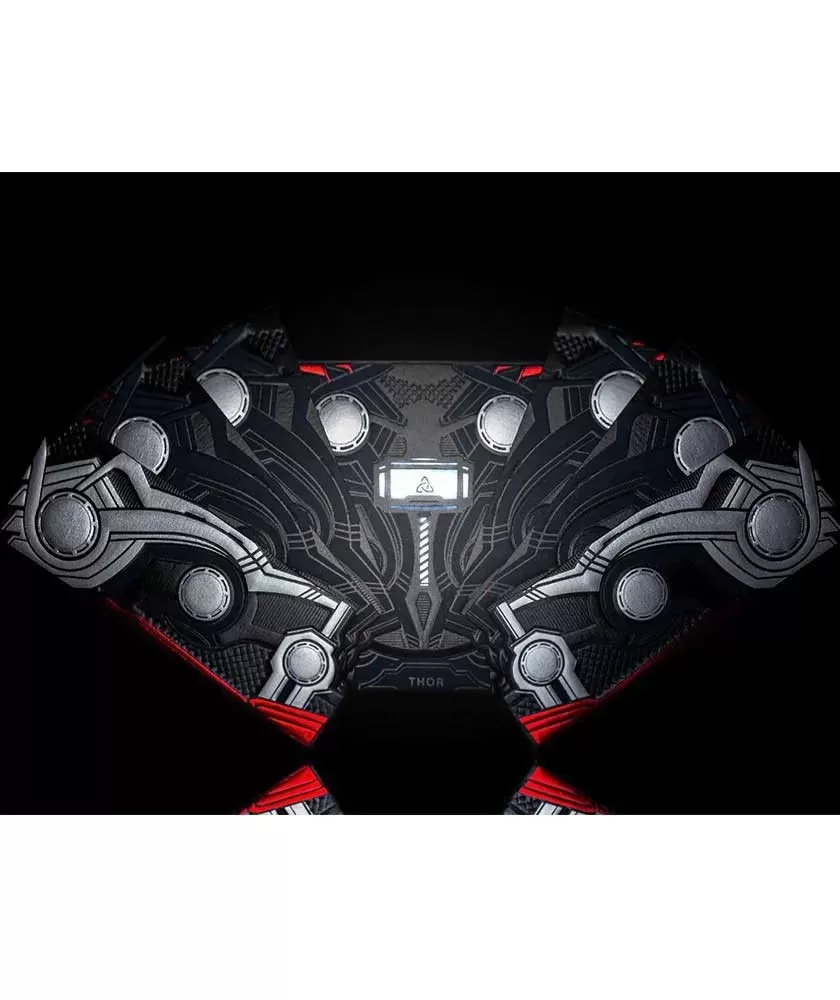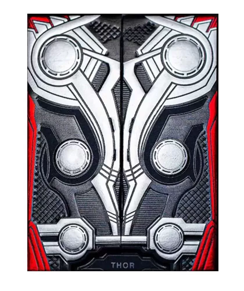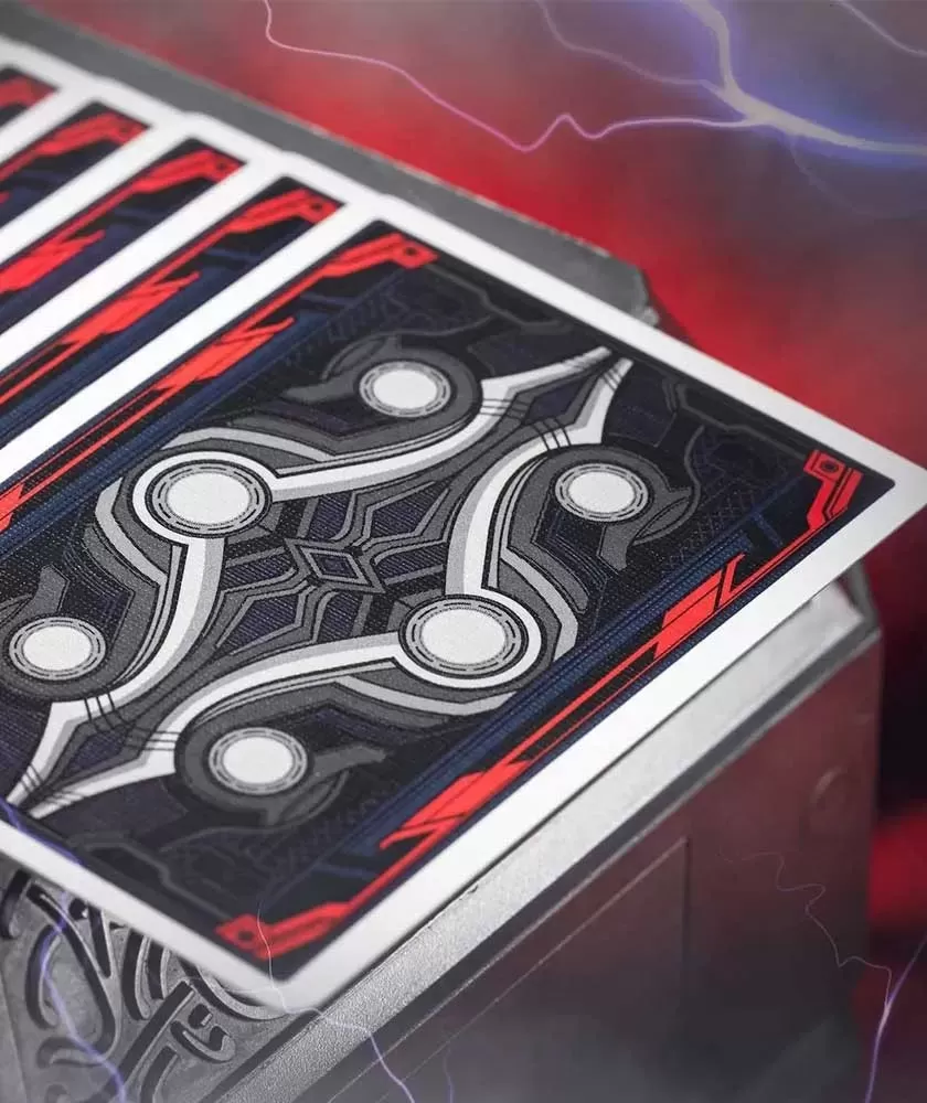 Fiecare pachet este imprimat cu grijă de Taiwan Playing Card Company, folosind Legendary Finish pentru o calitate superioară a hârtiei și a detaliilor vizuale. Cutia inovativă include lumini LED albastre în forma ciocanului Mjolnir, ce se aprind la deschiderea pachetului, iar bateriile pot fi înlocuite, asigurând până la 100.000 de deschideri.