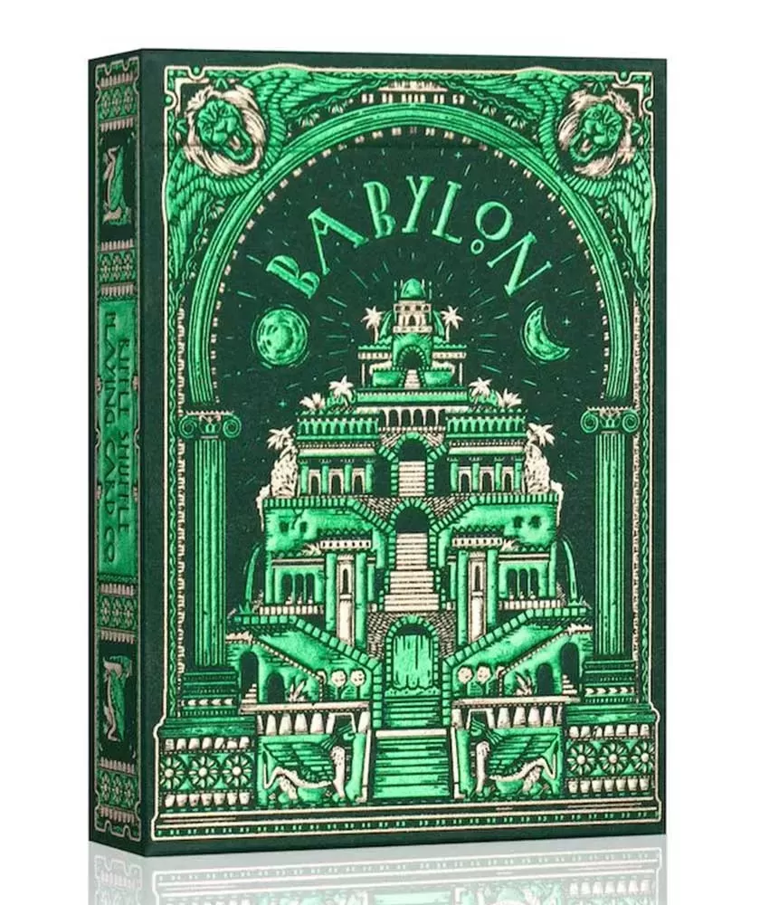 Babylon Forest Green – Playing Cards aduce în prim-plan atmosfera enigmatică și sofisticată a Babilonului antic, transpusă într-un set de cărți de colecție cu un design rafinat. Acest pachet se distinge prin culoarea verde pădure, care conferă un aer unic și elegant fiecărei cărți, făcându-l ideal pentru colecționari și pasionați de cărți de joc premium.