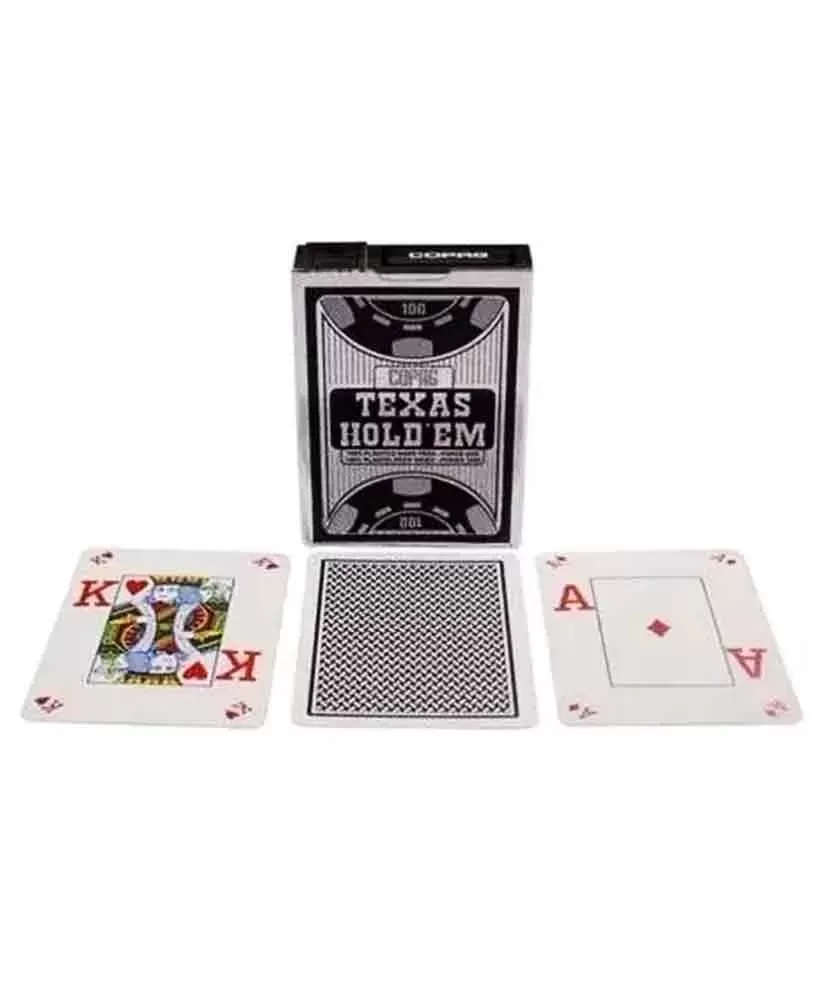 Silver Copag Texas Hold Em Plastic Jumbo – Playing Cards sunt create special pentru pasionații de poker Texas Hold'Em, oferind o experiență de joc clară și confortabilă. Aceste cărți se remarcă prin rezistența lor și indicele jumbo, care le face ușor de citit în orice situație.