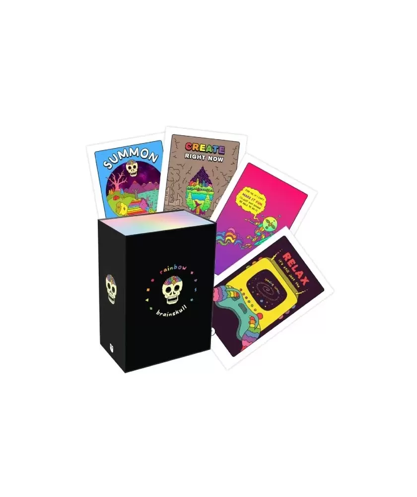 Rainbow Brainskull Oracle – Oracle Cards este un set unic conceput pentru a stimula inspirația și introspecția profundă. Creat de artistul Ramin Nazer din Los Angeles, acest pachet de 72 de cărți oracol aduce o explozie de culori electrice și mesaje pline de umor și înțelepciune, menite să te ajute să explorezi teme precum creativitatea, filosofia și conștiința superioară.