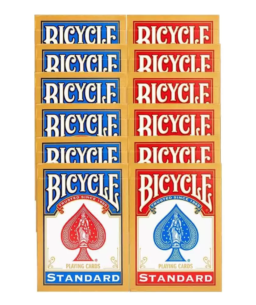Setul Bicycle Standard 808 – Playing Cards este soluția perfectă pentru pasionații de jocuri de cărți, magicieni amatori sau oricine are nevoie de mai multe pachete de calitate superioară. Acest set reunește 12 pachete Bicycle Gold 808 Standard, cu un mix echilibrat de 6 pachete cu spate roșu și 6 cu spate albastru, toate într-o cutie branduită elegant cu logo-ul Bicycle.