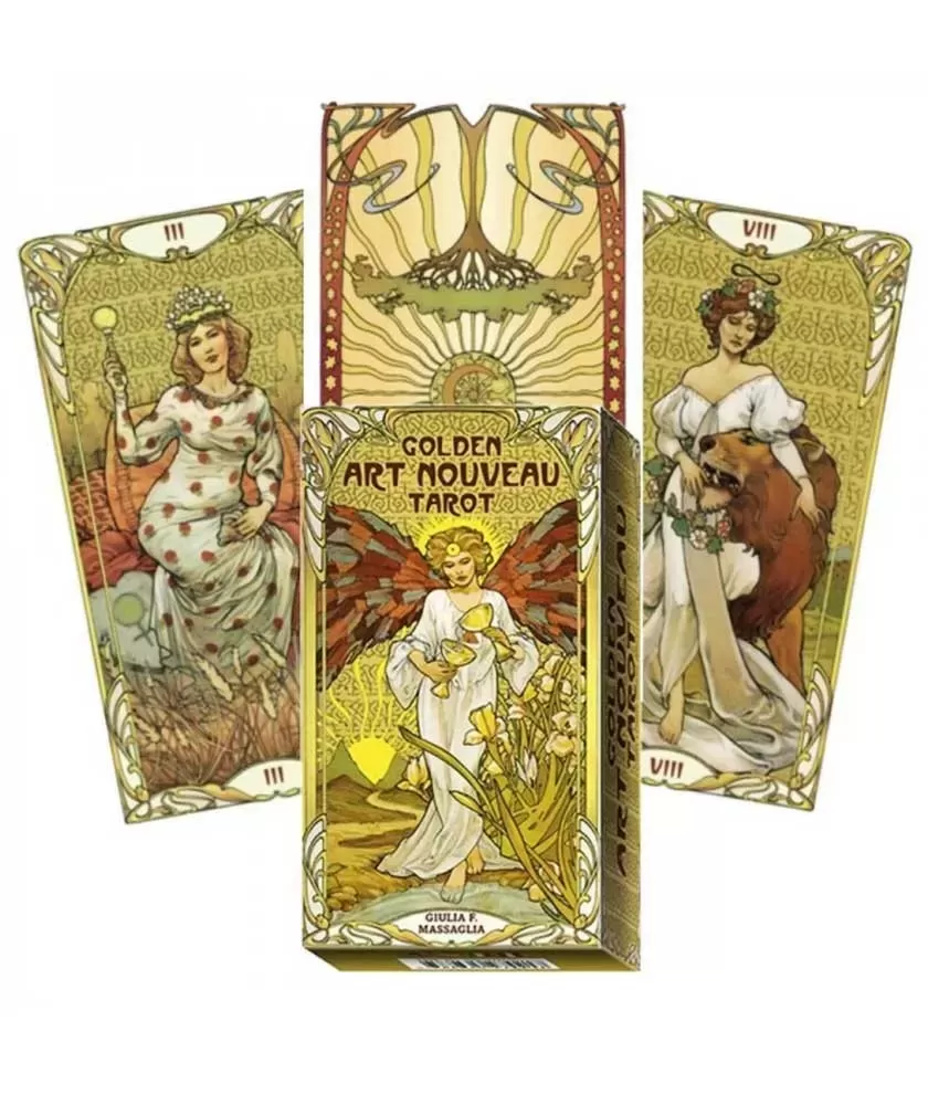 Golden Art Nouveau Tarot – Tarot Deck este un set creat pentru cei care caută o experiență vizuală și spirituală rafinată în arta citirii tarotului. Acest pachet emană o energie delicată și misterioasă, îmbinând simbolismul tradițional Rider-Waite-Smith cu eleganța curbelor și atmosferelor oferite de stilul art nouveau.