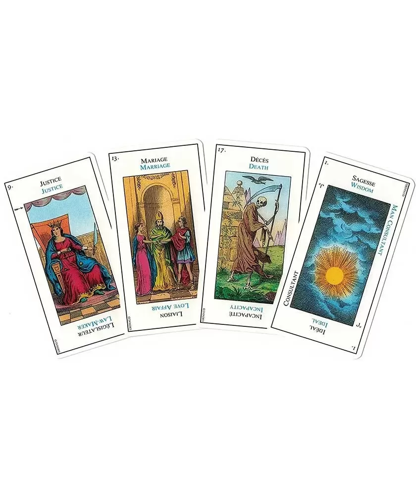- principale: Primul tarot divinatoriu : O creatie de referinta pentru iubitorii de carti de tarot . Simbolism mistic : Include elemente inspirate de traditiile egiptene si Kabbalah. Ghid practic : Livrat cu un manual disponibil in franceza si engleza .