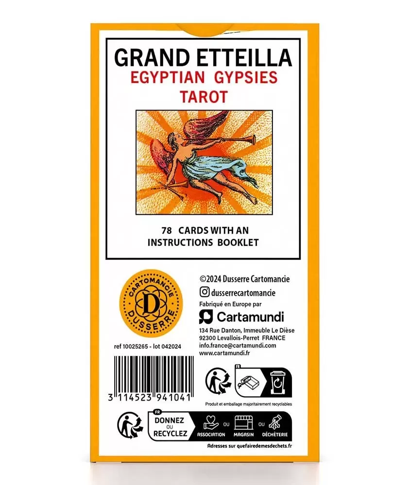 Fiecare carte poartă amprenta unei tradiții egiptene reinterpretate, îmbogățită cu elemente din Kabbalah, oferind astfel un limbaj vizual complex și fascinant. Grand Etteilla se remarcă prin designul său distinct și prin manualul disponibil în limbile franceză și engleză, ce facilitează înțelegerea și utilizarea pachetului atât de către începători, cât și de către cunoscători.