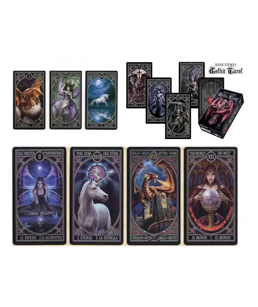 Acest tarot este o alegere inspirată pentru pasionații de stil gotic și fantasy, oferind un cadru ideal pentru reflecție și descoperirea unor perspective noi. Anne Stokes Gothic – Tarot Deck îmbină arta și simbolismul într-un mod care stimulează intuiția și creativitatea, invitând la o călătorie personală plină de mister și profunzime.