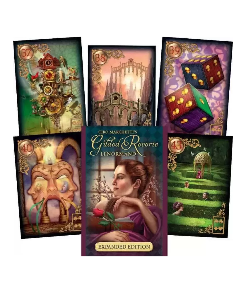 Tarot Gilded Reverie Lenormand Expanded – Tarot Deck este un instrument ideal pentru cei care caută o conexiune profundă cu simbolurile tradiționale Lenormand reinterpretate printr-o artă contemporană și sofisticată. Acest set aduce o energie introspectivă și poetică, invitând la reflecție și explorare personală.